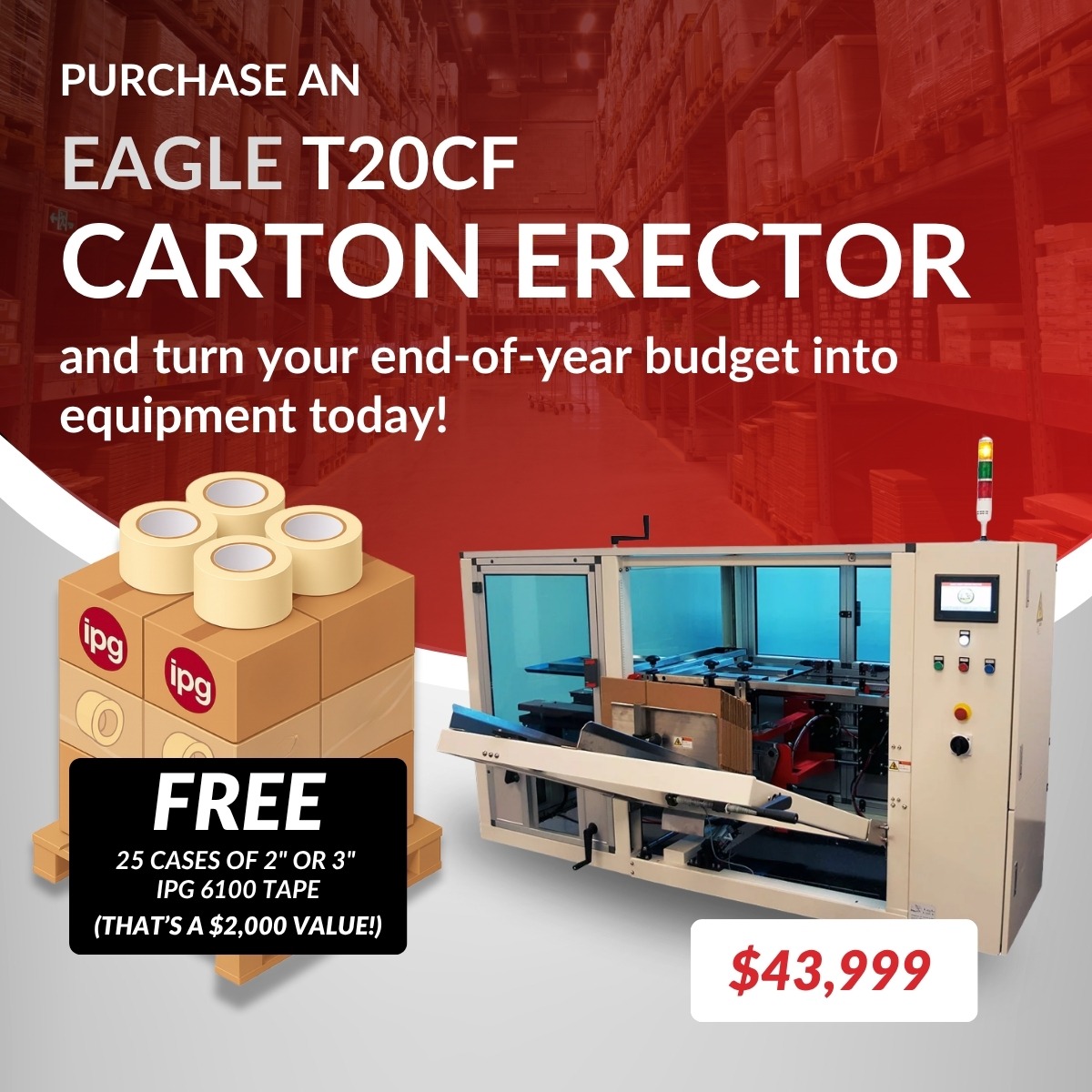 Limited time offer - FREE 25 cases of 2" or 3" Polypro 6100 IPG tape with the purchase of a T20CF Carton Erector.