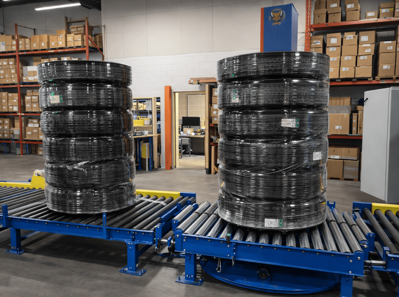 Shrink film conforms securely around products, reducing movement, protecting against dust and moisture, and improving unitization.