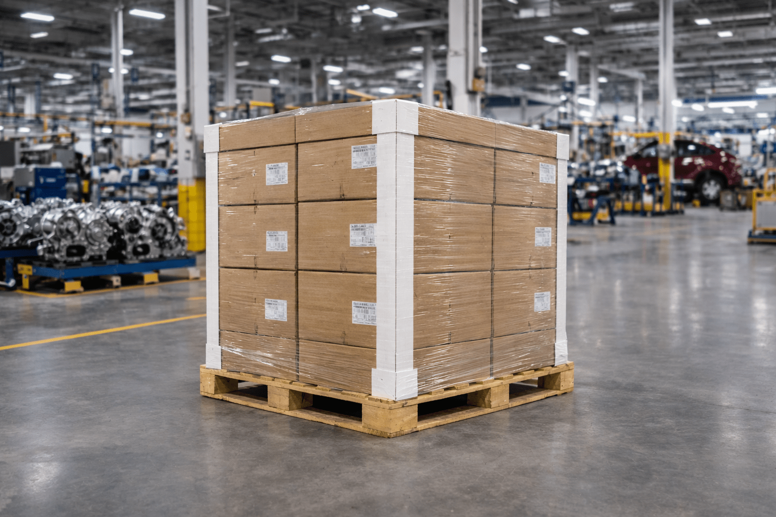 High-strength corrugate and reinforced pallet systems built to support dense, uneven automotive loads without failure.