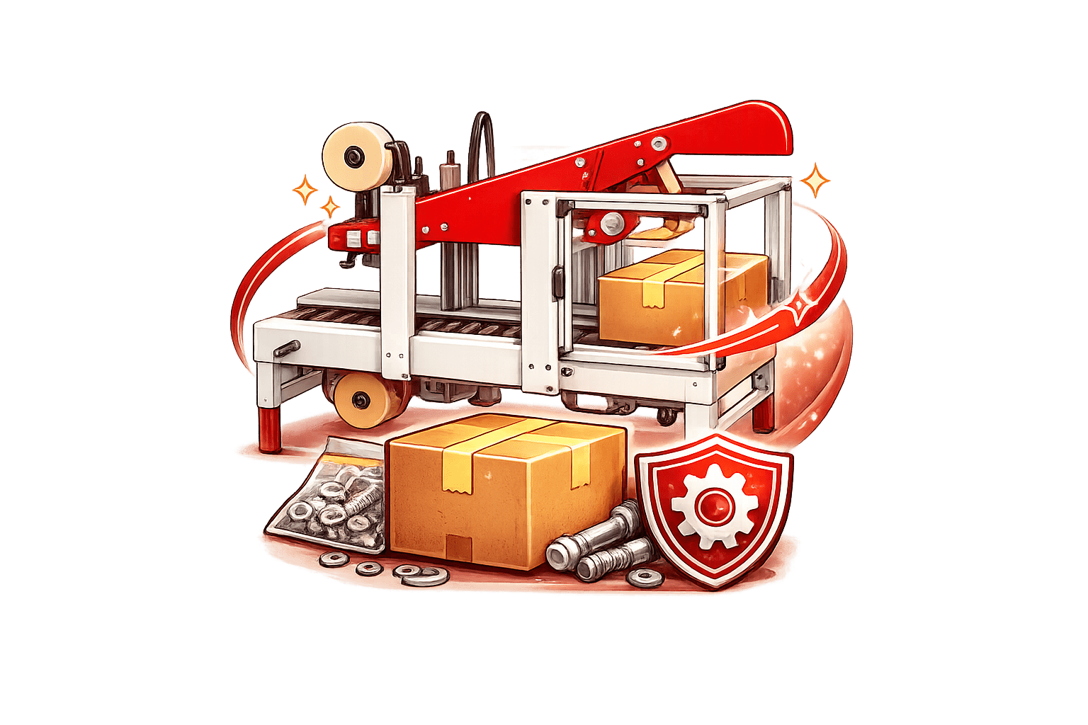 Case sealers play a critical role in fastener packaging by securely closing corrugate cartons filled with heavy screws, bolts, nuts, and other hardware components.