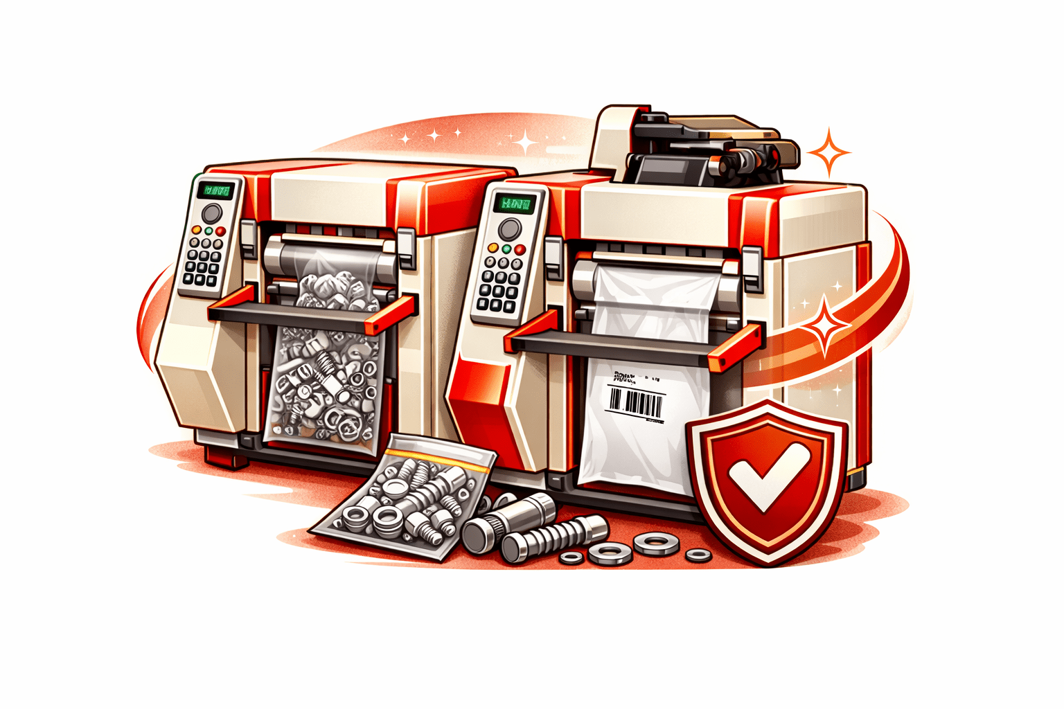Automated bagging systems package screws, bolts, nuts, washers, and other small fasteners into sealed poly bags for distribution. Integrated counting or weighing systems ensure accurate quantities while increasing packaging speed and reducing manual labour.